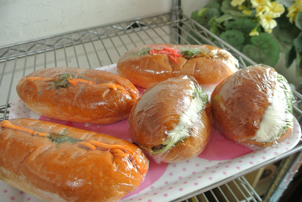 あんぱん,うぐいすぱん,カレーぱん,豆ぱん,メロンぱん,チョココロネ、クリームぱん、ジャムぱん、たまごぱん,タルタルウインナーなど